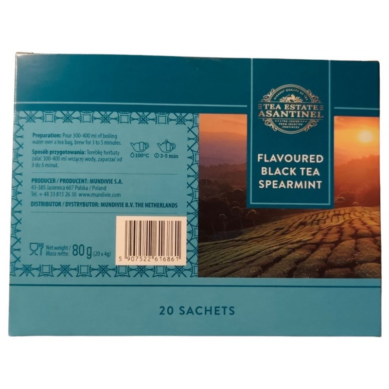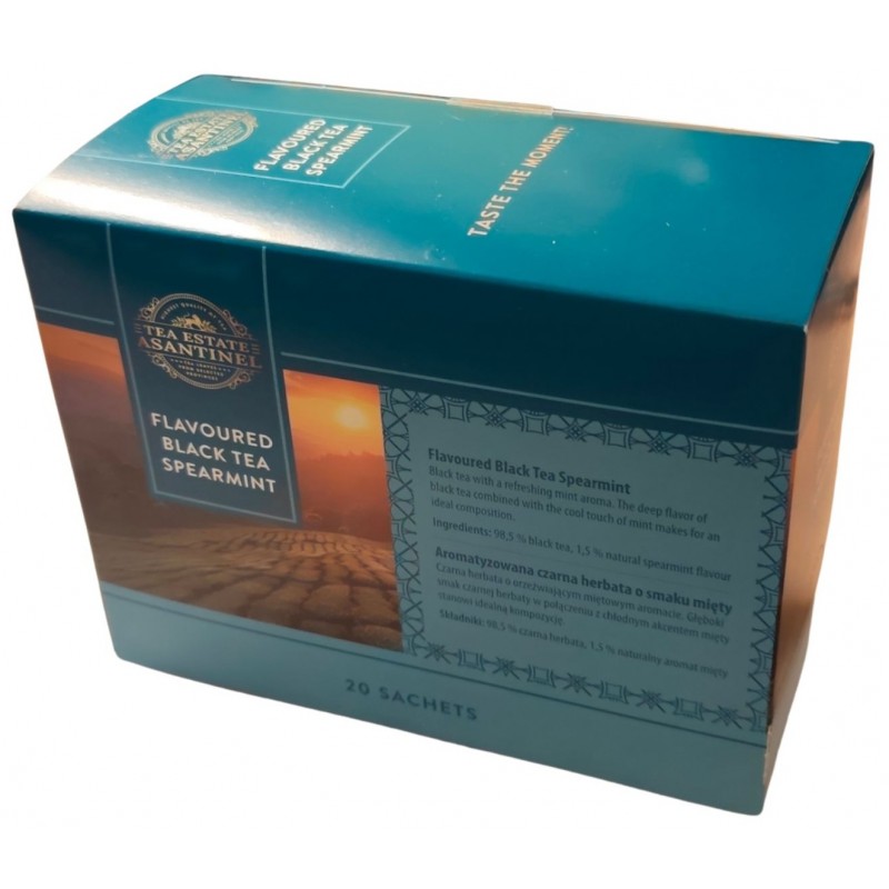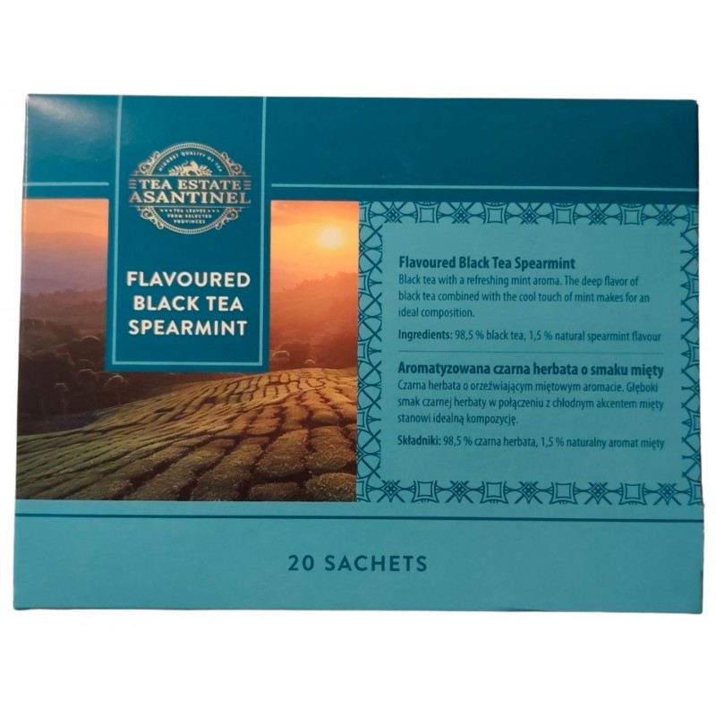 - Skład: Wyselekcjonowana czarna herbata, naturalny aromat mięty zielonej (Spearmint)