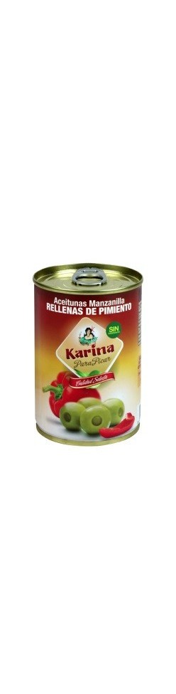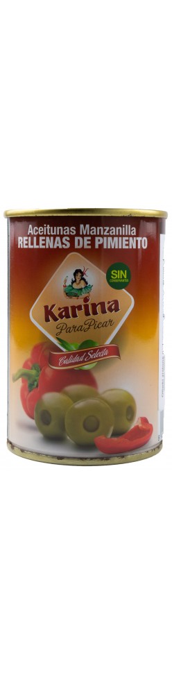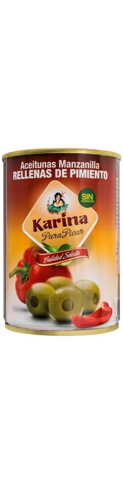 Składniki: Zielone oliwki Manzanilla bez pestek, papryka 6% (papryka, emulgator: alginian sodu), woda, sól, wzmacniacz smaku: glutaminian sodu, guanylan disodowy, inozynian disodowy, przeciwutleniacz: kwas cytrynowy, kwas askorbinowy. Przechowywać w miejscu chłodnym i suchym. Najlepiej spożyć przed końcem daty drukowanej na opakowaniu. Po otwarciu przechowywać w warunkach chłodniczych nie dłużej niż 4 dni. Waga netto 295g, po odsączeniu 120g. Wyprodukowano w Hiszpanii.