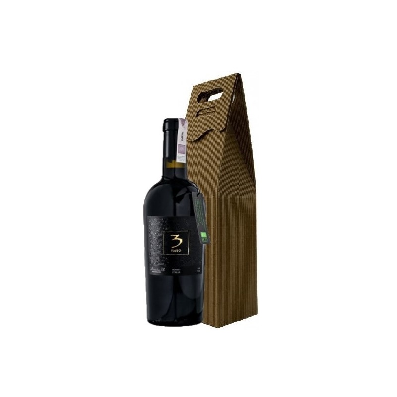 Zestaw prezentowy wino czerwone włoskie Bio 3 Passo w kartoniku z tektury eko