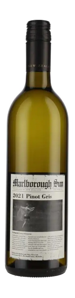 Marlborough Sun Pinot Gris produkowane jest w 100% z winogron Pinot Gris uprawianych w wybranych winnicach w dolinach Wairau i Watere w Marlborough. Winogrona zbierane są wcześnie rano, transportowane do winnicy i tłoczone. Sok poddawany jest chłodnej fermentacji w zbiornikach ze stali nierdzewnej, aby zachować jak najwięcej pierwotnych nut i świeżości. Złociste w kieliszku. Aromat jest z nutami melona, brzoskwini i marakui. Smak jest bogaty i kremowy z nutami dojrzewającej w słońcu gruszki, brzoskwini i skórki sycylijskiej cytryny z przyjemną, pyszną kwasowością, która utrzymuje się w długim i świeżym posmaku. Idealne jako aperitif, na tarasie lub do dań z tłustych ryb, owoców morza, drobiu, makaronów ze śmietaną, risotto, warzyw, grilla itp.