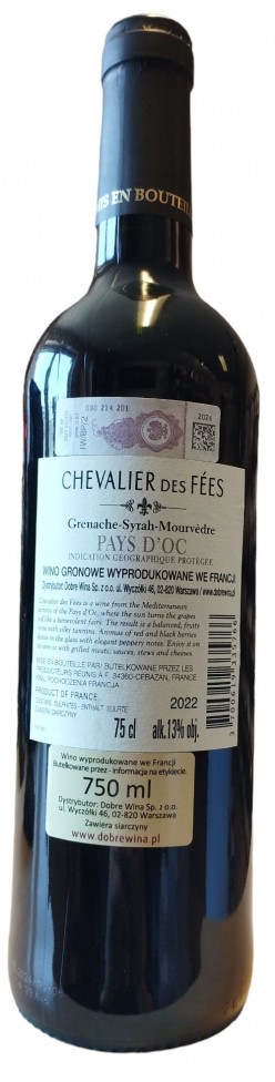 Wino czerwone Chevaliers des Fees GSM d'Oc francuskie wytrawne 0,75 L