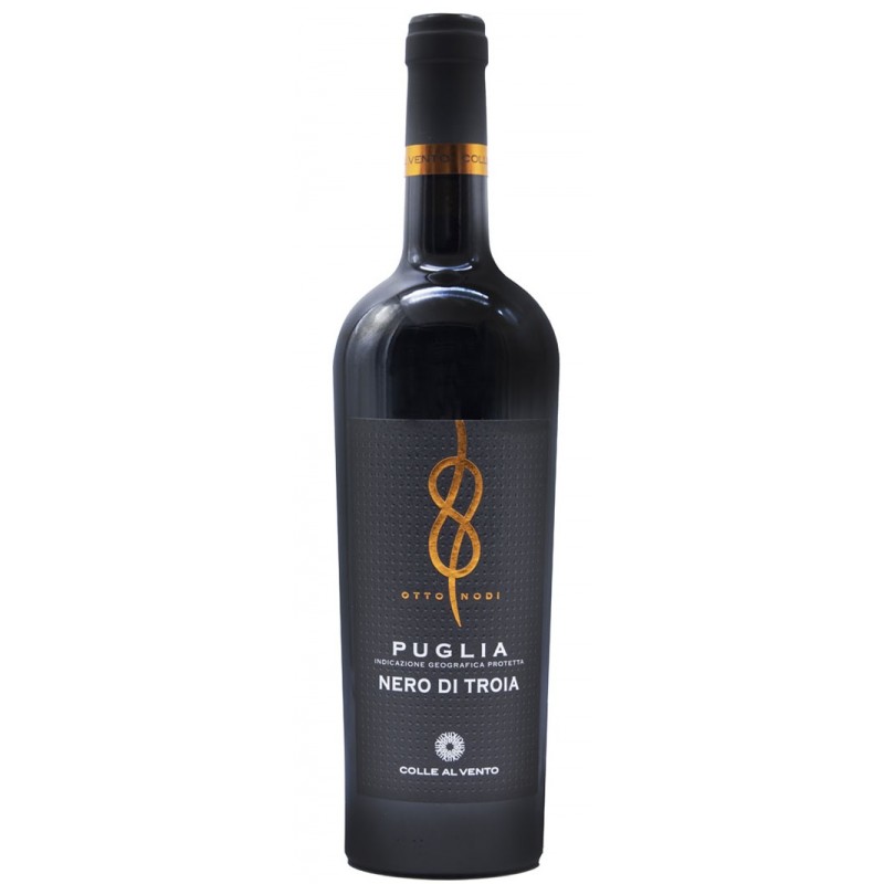 Nero di Troia Otto Nodi to eleganckie i harmonijne czerwone wino wytrawne, pochodzące z regionu Puglia – krainy słynącej z produkcji intensywnych i aromatycznych win. Szczep Nero di Troia to jedno z najbardziej charakterystycznych winogron południowych Włoch, cenione za głębię smaku, aksamitną strukturę i subtelne nuty przypraw.