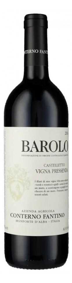 Barolo Castelletto Vigna Pressenda 2016 to czerwone wino pochodzące z prestiżowej winnicy Conterno Fantino w regionie Piemont we Włoszech. Jest to klasyczny przedstawiciel Barolo, wytwarzany w 100% z winogron Nebbiolo z winnicy Castelletto Vigna Pressenda w Monforte d'Alba.