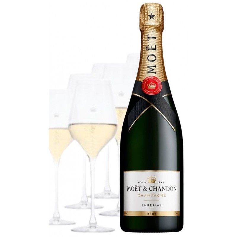 - W zestawie: 1 x Moët & Chandon Brut Impérial 0,75 l + 1 x Oryginalny kieliszek sygnowany