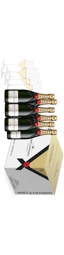 Zestaw Moët & Chandon Champagne Brut Impérial 0,75 l x 6 + Kieliszek x 6 (SET 6+6)