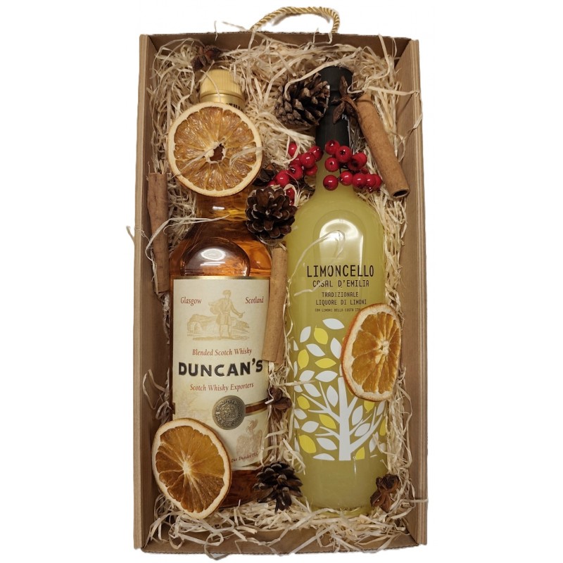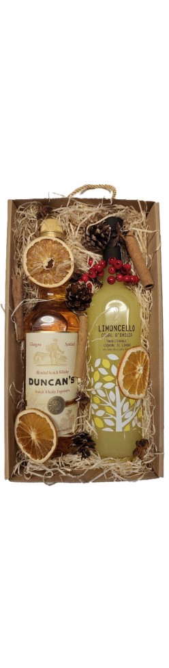 Elegancki zestaw prezentowy, który łączy słoneczną, włoską lekkość z rozgrzewającą, szkocką tradycją. To idealny duet dla miłośników kontrastowych smaków i wysokiej jakości alkoholi. Zestaw jest starannie zapakowany w ekologiczny kartonik i ozdobiony kompozycją natury, która zachwyci obdarowaną osobę.