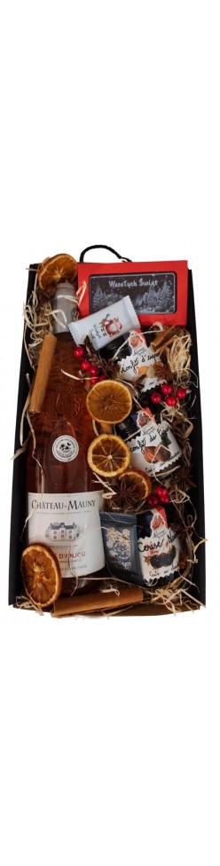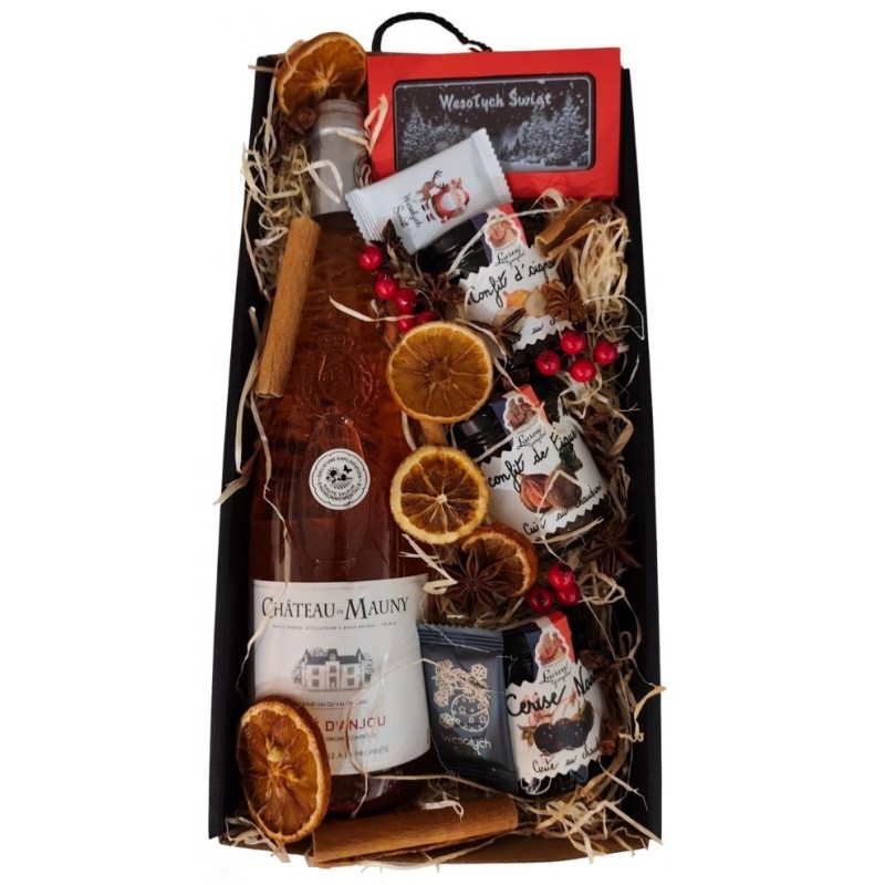 Zestaw Magia Świąt A’la Francja: Wino, Konfitury i Czekolada to wykwintny upominek, stworzony z myślą o miłośnikach elegancji i finezyjnych połączeń kulinarnych. Łączy on szlachetne francuskie wino, trzy delikatesowe konfitury oraz słodkie, świąteczne akcenty.