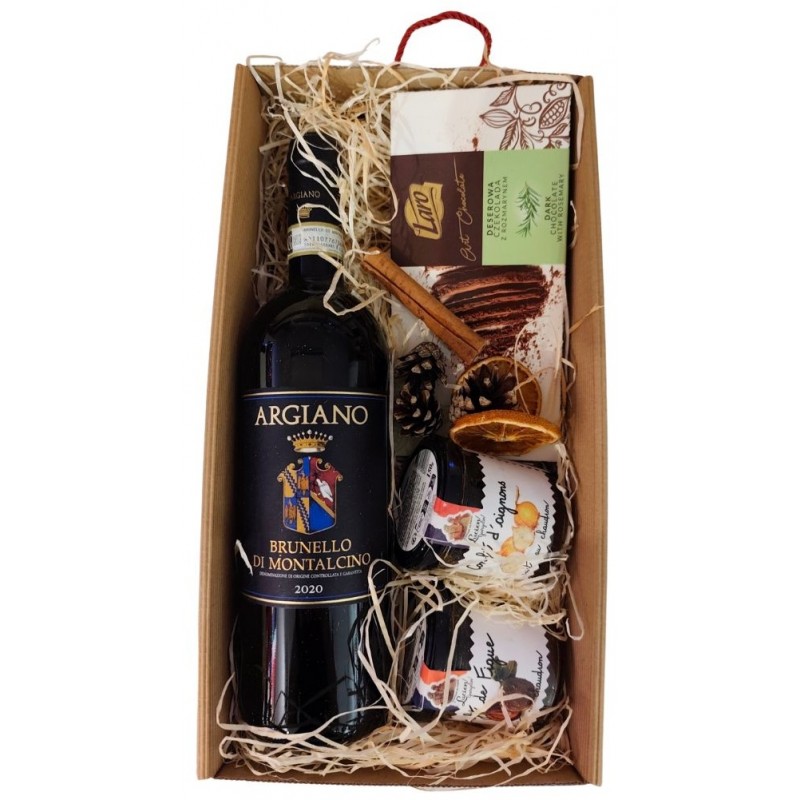 - Zestaw z winem Brunello di Montalcino Argiano 2020 – jednym z największych skarbów włoskiego winiarstwa.